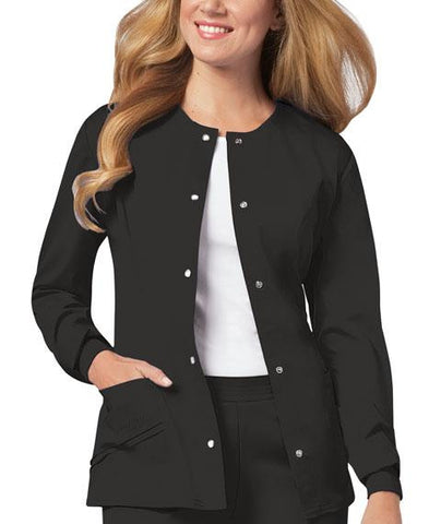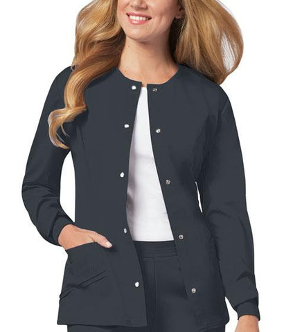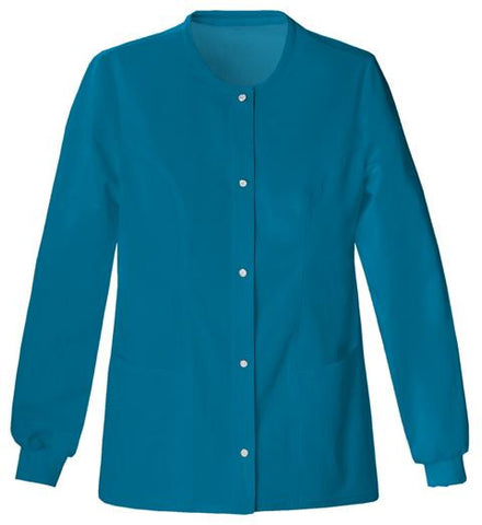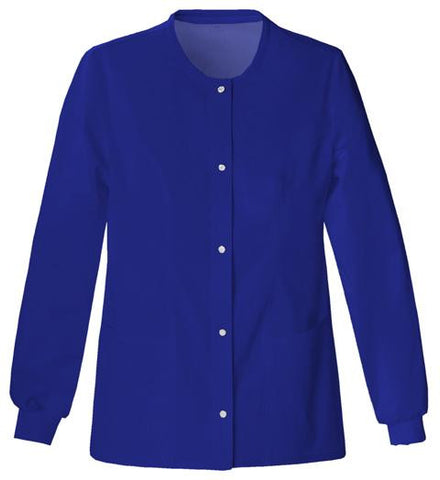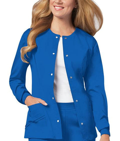 A Modern Classic fit warm-up jacket features a Luxe logo on each of its front snaps, flat piping around the neckline, front and back princess seams, two patch pockets and an additional angled pocket with multiple pin-tucks and tonal zigzag stitching. Knit cuffs complete this jacket. Center back length: 27 1/2"