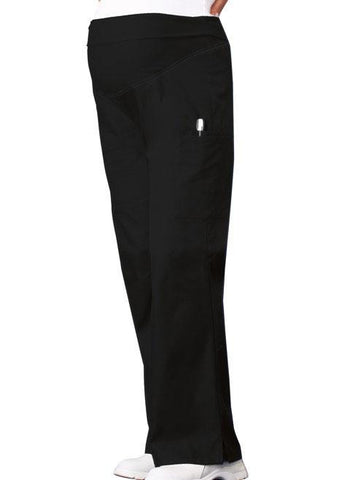 This great fitting, adjustable rise, moderate flare leg maternity pant features a soft and stretchy tummy panel which grows with you! Double needle topstitching edges the knit panel, double cargo pockets, and back pocket and side vents finish this look. Our comfy Maternity styles are designed to support and flatter using your current size, so no need to size up. When ordering Cherokee Maternity styles, remember to order your pre-pregnancy size. Inseam: 34"