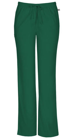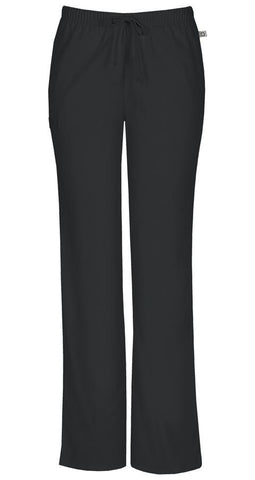 A Modern Classic fit, mid rise, moderate flare leg pant features an adjustable drawstring with an all around elastic waistband. Also featured are front slash pockets, an instrument loop, a back pocket and side vents. Inseam: 28 1/2"