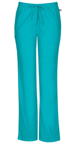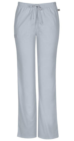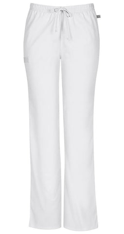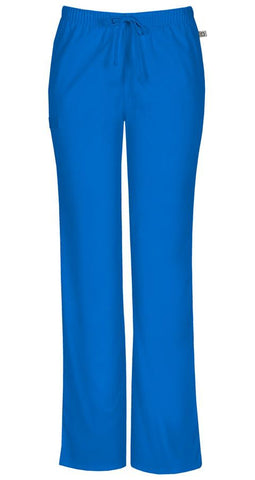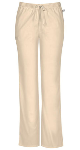 A Modern Classic fit, mid rise, moderate flare leg pant features an adjustable drawstring with an all around elastic waistband. Also featured are front slash pockets, an instrument loop, a back pocket and side vents. Inseam: 34"