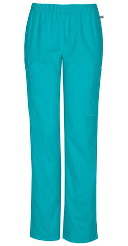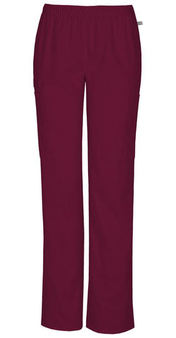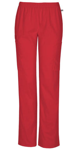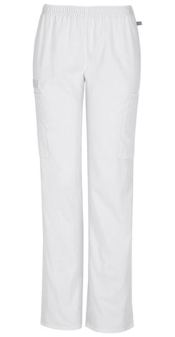 A Modern Classic fit, mid rise, straight leg, elastic waist utility pant features two cargo pockets, an instrument loop and outside scissor pocket. Inseam: 31"