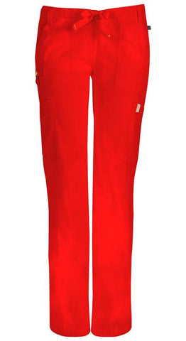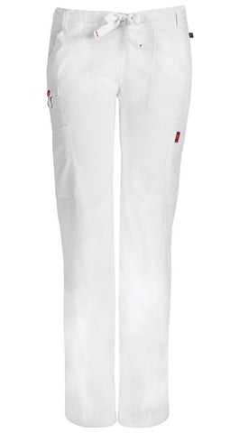 A Contemporary fit, low rise, straight leg, adjustable drawstring pant with an elastic waist features belt loops, front slash pockets, cargo pockets, a back yoke and one back patch pocket. Also featured is an instrument loop on the right pocket with a non-functional logo snap and bungee I.D. loop. Front leg seams, an adjustable bungee inside the leg opening and double needle topstitching complete this pant. Inseam: 28 1/2".