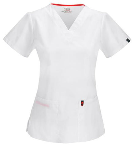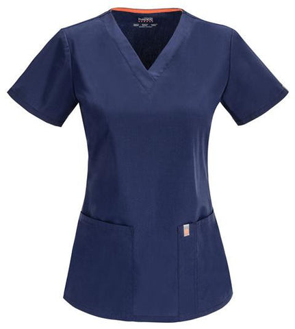 A Contemporary fit V-neck top features front patch pockets, an interior mesh instrument loop, signature mesh binding at the back neck and side vents for ease of movement. Center back length: 26".