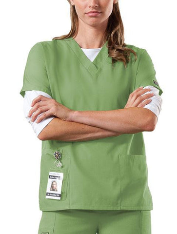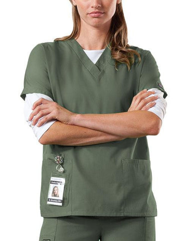 A Traditional Classic fit, dolman sleeve, V-neck top with side seam vents, two patch pockets and a cell phone pocket. Center back length: 26 1/2".