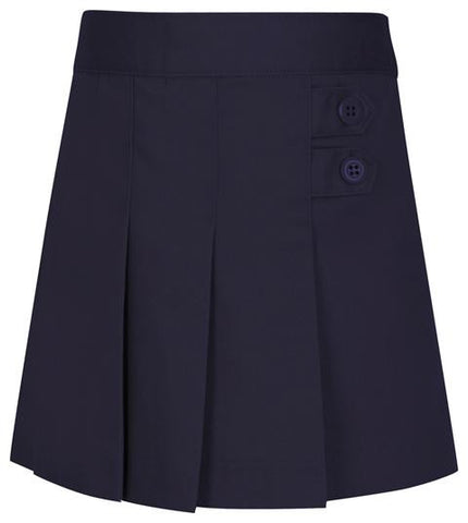 This kilt-inspired scooter with a back elastic waistband features a 3-pleat front with 2 decorative button tabs, and built-in poly knit shorts. Easy care 65% Poly/ 35% Cotton Twill. Imported. Also available in 55121 (Girls 4-6X), 55122A (Girls 7-16), 55123 (Girls Plus 8 1/2-20 1/2), 55124 (Junior 1/2-21/22).