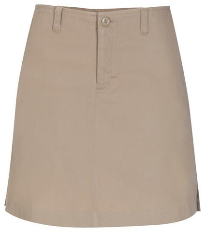 Feminine and functional girls scooter with flat back panel, fly front, center-back elastic waist, slash pockets, and belt loops. Stretch fabric of cotton/poly/spandex blend has supple fit and feel with wash-and-wear ease. Imported. For sizes 4-6X see style 55641, for sizes 7-16 see style 55462 and for Juniors sizes 1/2-21/22 see style 55644.