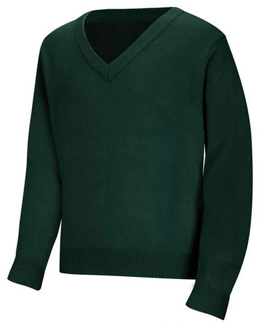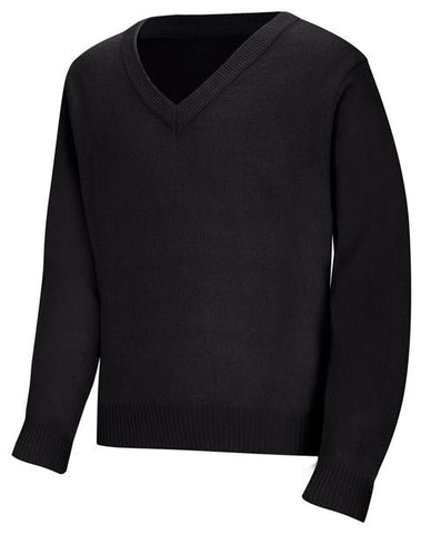 Unisex V-neck pullover sweater with half Milano stitch and turn-back ribbed cuffs, collar and hem. No pill, easy care 100% Acrylic knit. Imported. Also available in 56702 (Youth XS-XL).