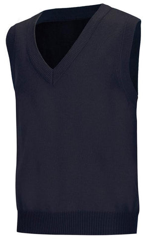 Unisex V-neck pullover sweater vest with half Milano stitch and turn-back ribbed V-neck collar, armhole and hem. No pill, easy care 100% Acrylic knit. Imported. Also available in 56912 (Youth X-XL).