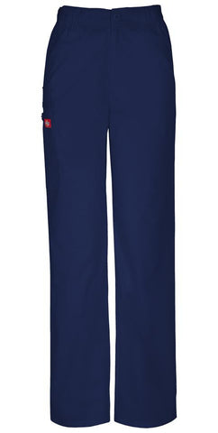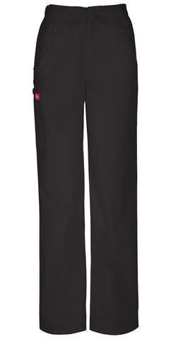 A Mens Fit, natural rise, zip fly pant features button closure at the waist, insidedrawstring, two front pockets with decorativeDickies logo rivets, one back pocket with a hook and loop fastener to keep items secure, a cargo pocket for extra storage and instrument loops. Inseam: 32".