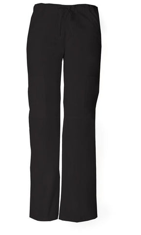 A Contemporary fit, low rise, straight leg pant features an adjustable drawstring with an all around elastic and Dickies logo twill tape on the inside back waistband. Also featured are patch pockets with a utility loop, cargo pockets, a scissor pocket, multi pencil slots, a back pocket, front knee seams and double needle topstitching throughout. Inseam: 33 1/2".