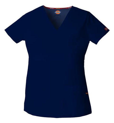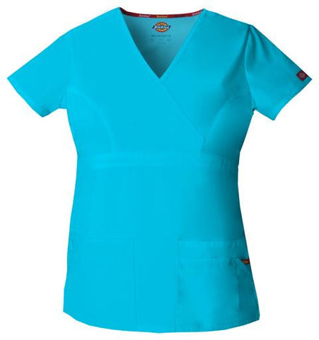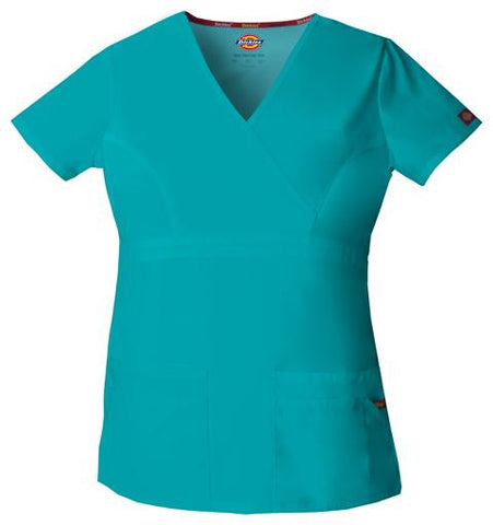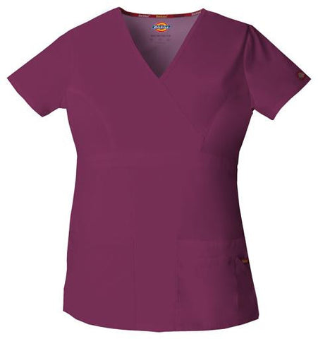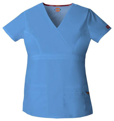 A Contemporary fit, empire waist, mock wrap top features Dickies logo twill tape at the back neck and an instrument loop on the left pocket. Also featured are multiple patch pockets with a pencil slot, front princess seams and side vents. Center back length: 26"