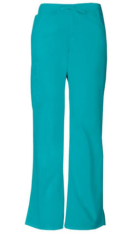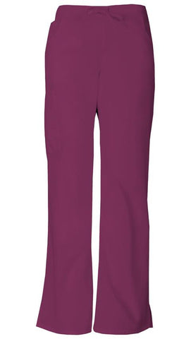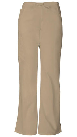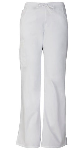 A Modern Classic fit, mid rise, moderate flare leg pant features an adjustable drawstring with elastic at the back waist and Dickies logo twill tape on the inside back waistband. Also featured are patch pockets, a back pocket, cargo pockets with a stretch Red knit interior pocket (White knit pocket on White)and side vents. Inseam: 33 1/2".