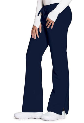 This Contemporary fit, mid rise, moderate flare leg pant offers a cool, sleek fit that is a perfect addition to your wardrobe. Adjustable front drawstring and back elastic gives added comfort. Two front pockets, cell phone pocket, back pocket and instrument loop keeps all your gear in place. Side vents at bottom hem. Inseam: 34".