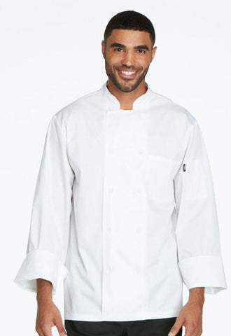 The Cool Breeze Chef Coat is a favorite. Single needle top stitching and covered buttons add to the style of the coat. It has a front patch pocket and thermometer pocket on the sleeve. The mesh back vent keeps you cool in the kitchen. The long sleeves on this coat have turned back cuffs.Center back length is 30 1/2".
